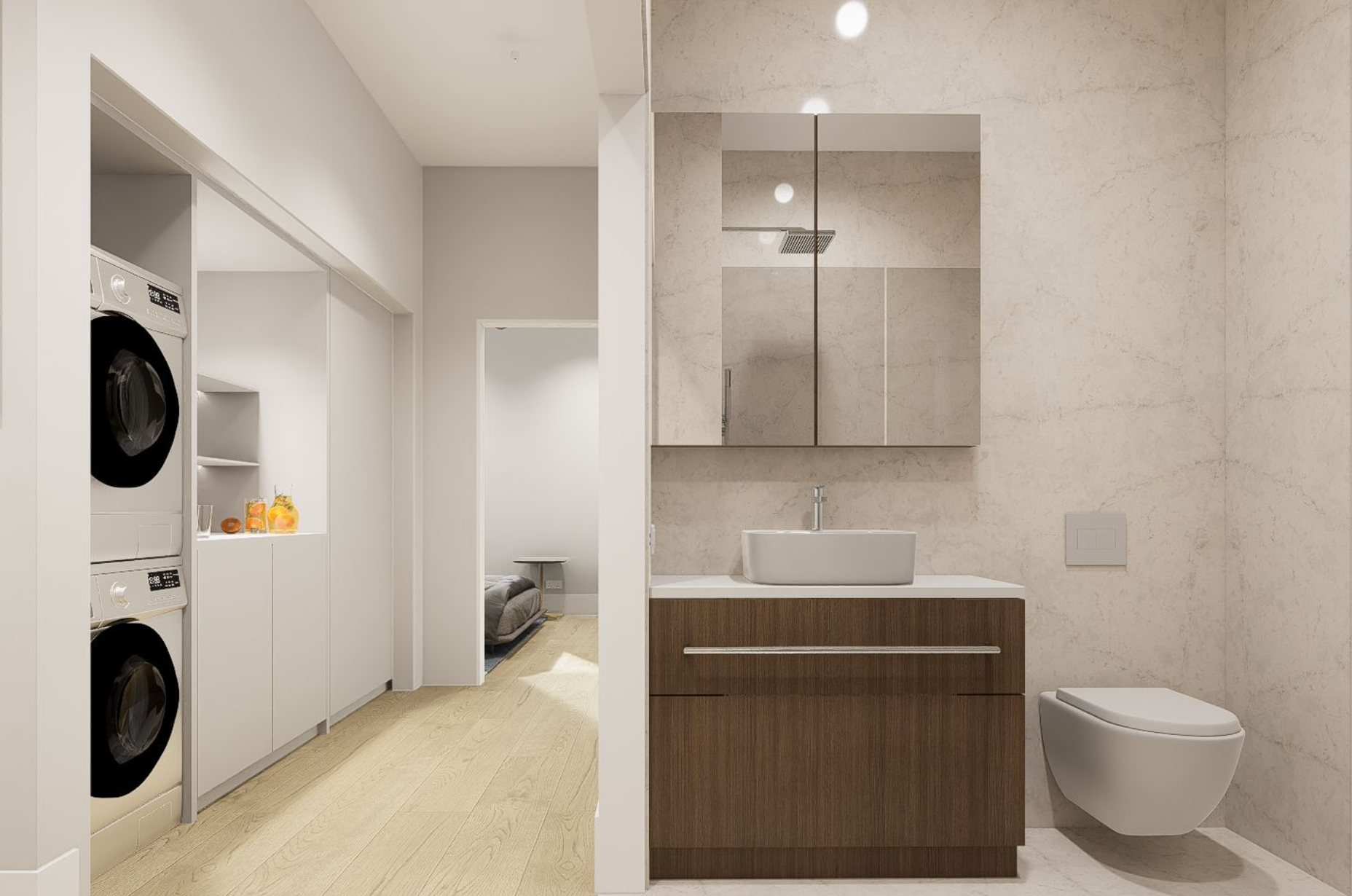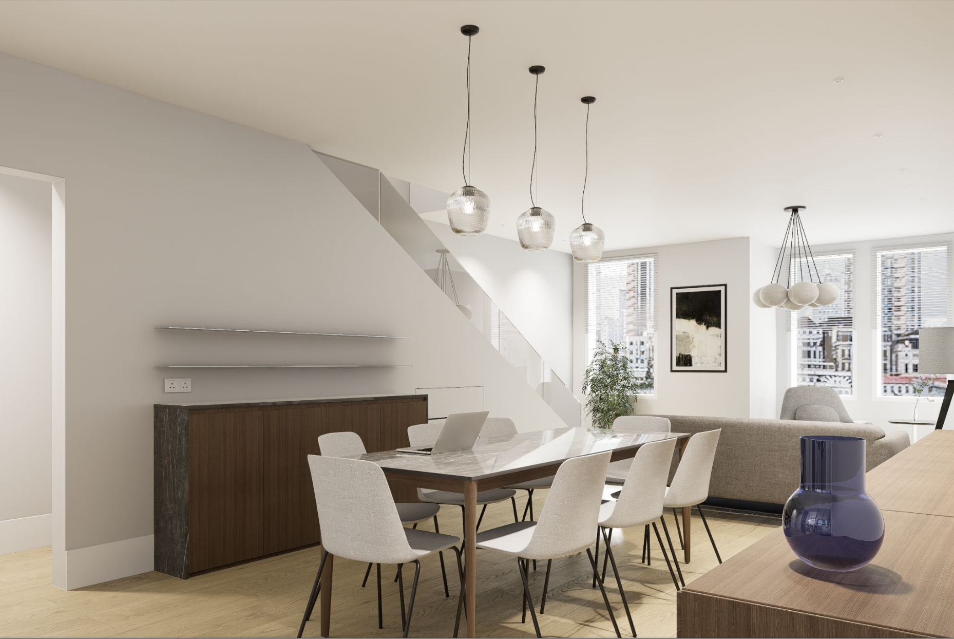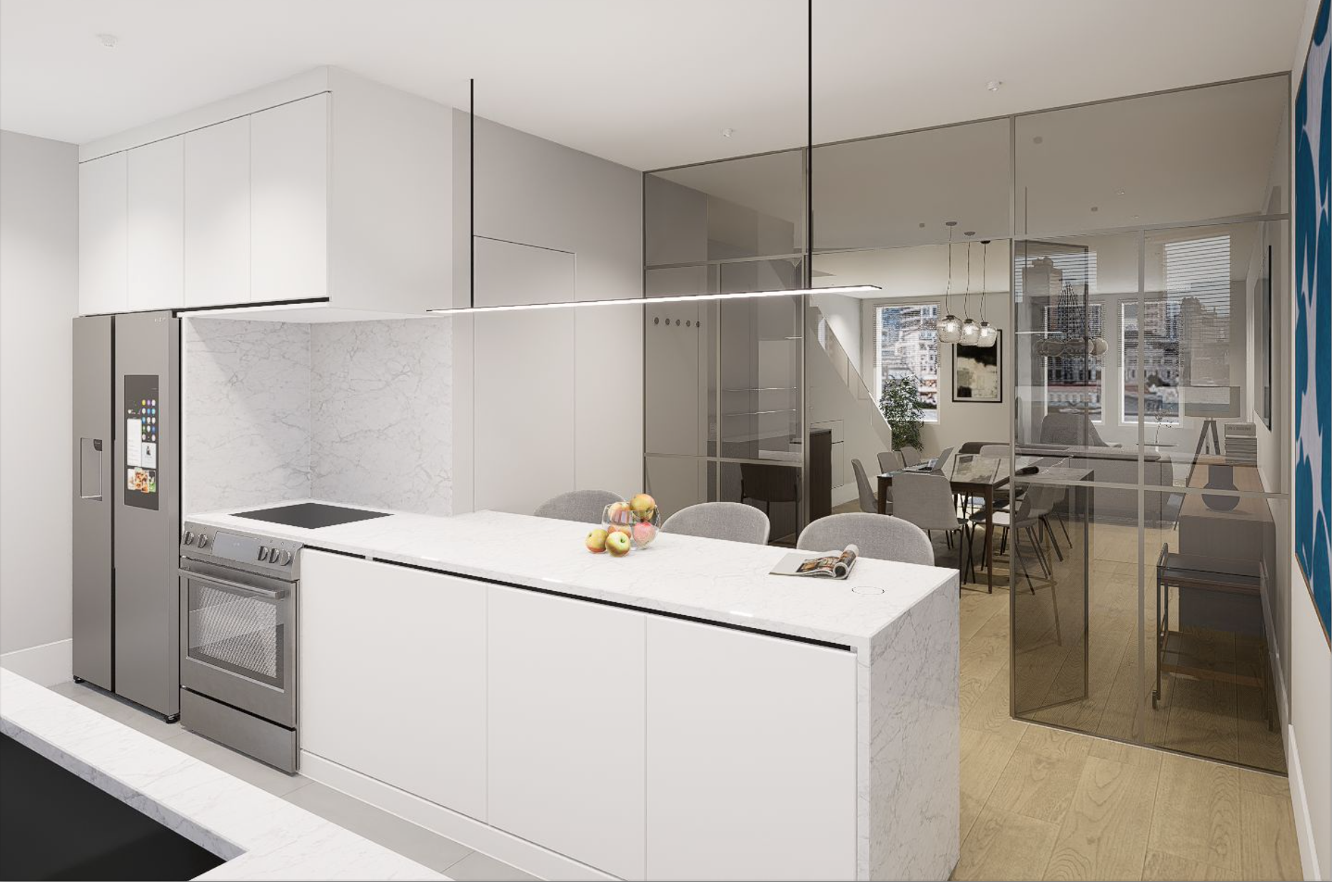 The units will be self-contained and finishes will be upper level quality. Each unit will contain an individual HVAC unit, tankless water heater and stacked washer and dryer unit. Flooring will consist of hardwood finished in place with alternate flooring consisting of European tile installed in the bathrooms. Kitchens and bathrooms will consist of upper level cabinetry and vanities (baths). Kitchen appliances will consist of upper mid-level stainless steel appliances (dishwasher, refrigerator, range/oven, and microhood as well as upper level kitchen and bath fixtures. Countertops will be solid-surface (granite, quartz or equivalent). Wall tile and backsplashes for each unit will be high-end stone or equivalent. Kitchen and bathrooms will consist of European tiles. The building will be equipped with a full sprinkler system and smoke detectors. The units will also be equipped with an alarm and intercom system and will be separately metered for electricity. The exterior walls of the building are brick, the roof surface is will be a composite material, and gutters and downspouts will be metal or vinyl. The units will contain insulated front glass entry doors. Windows will be a combination of vinyl double-hung, casement and fixed, insulated glass with screens.